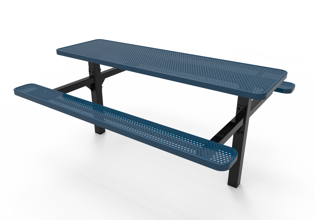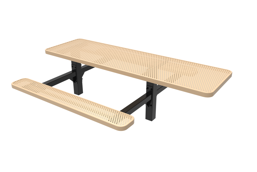 Elevate your outdoor dining spaces and foster vibrant community connections with the MyTCoat 8 Foot Rectangular Double Pedestal Table, Punched Steel, In ground Mounting (SKU TRT08)!
