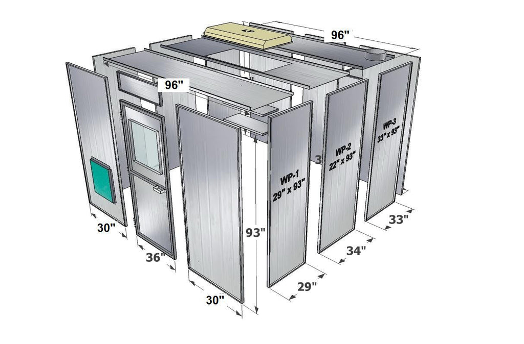 The paint storage and mixing room provides a code-compliant ventilated room for paint storage and mixing – excellent addition to a paint and body shop configuration.