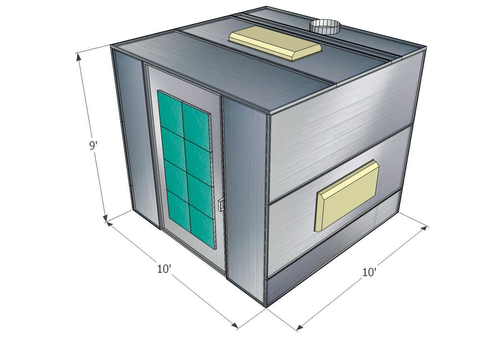 The Finishing booth is the smallest enclosed paint booth we offer. It provides a code-compliant spray environment within the smallest ‘footprint’ possible - optimal solution for small parts coating.