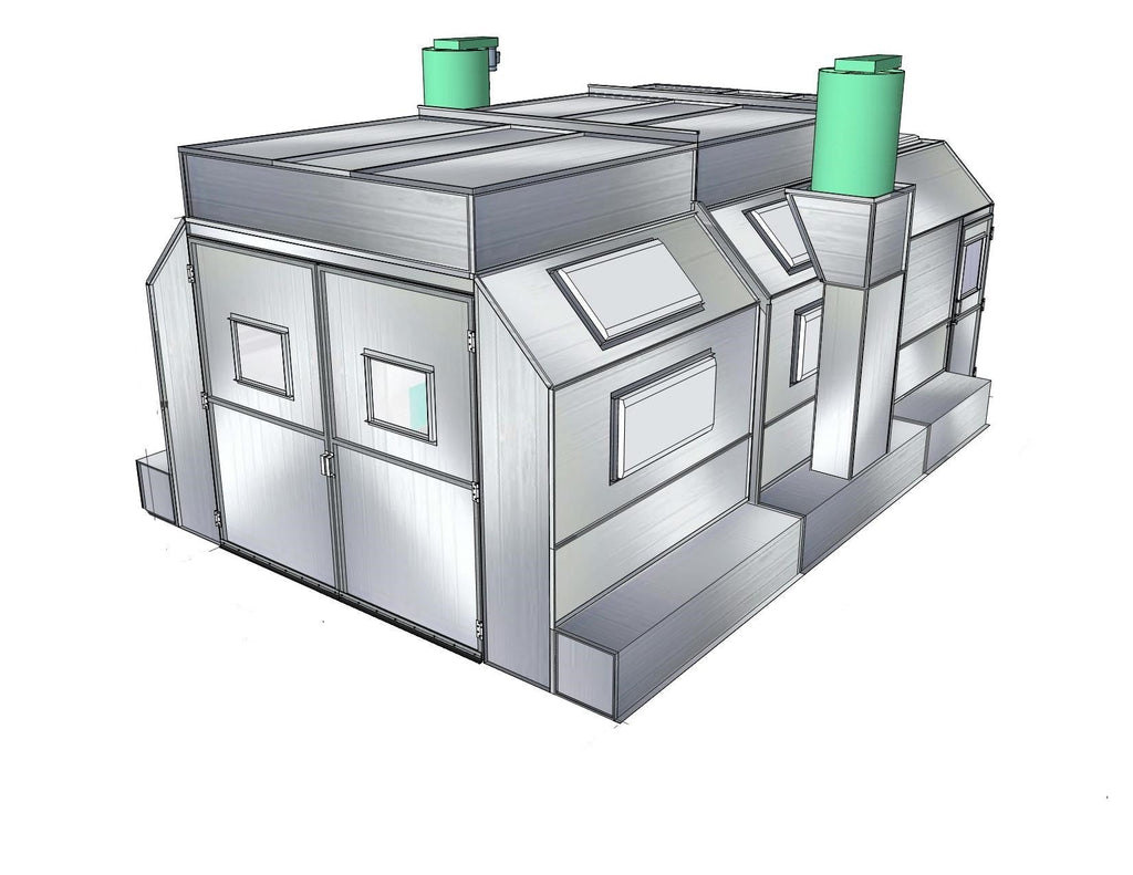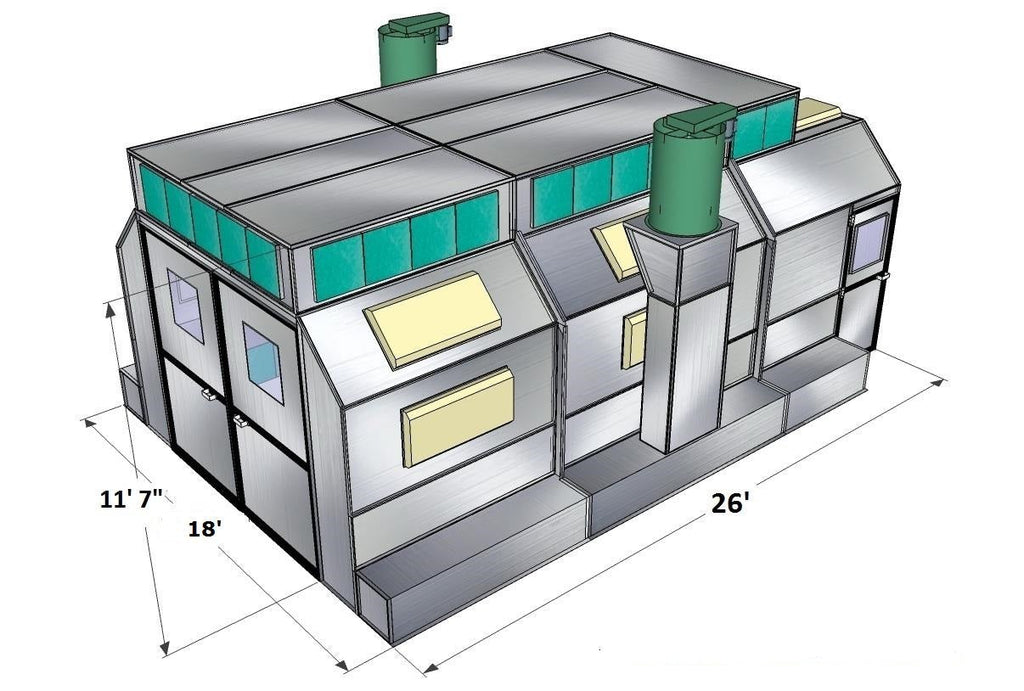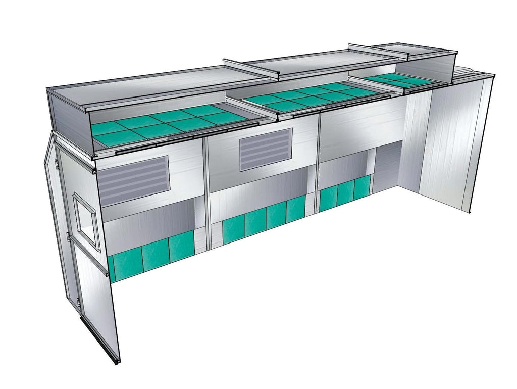 The Side Down Draft (SDD) booth provides the optimal air flow for the highest quality (paint) finishes. Higher-end booth with top-down air flow and dual chimney exhaust.