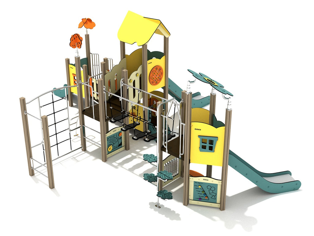 Includes: Four Quest Slides, interactive Cloud Panels, Transfer Station, Suspension and Picket Bridges, and Quest Snake and Leaf Climbers