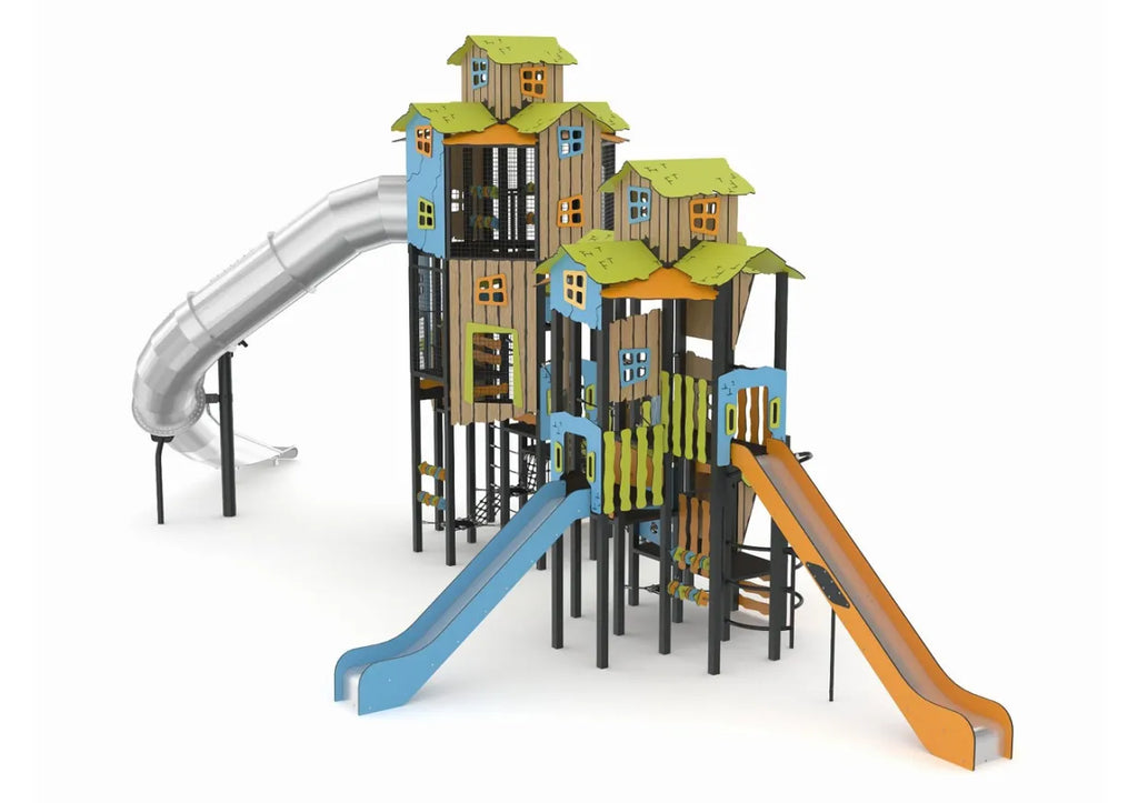 - Fun Slides and Interactive Games: Add elements of exhilarating fun and cognitive engagement with the integrated slides and mounted interactive game panels that challenge young minds and bodies.