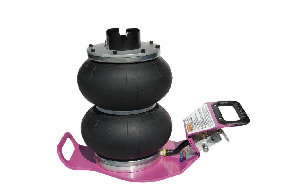 The Rak Jak Double Air Jak allows you to jack a vehicle up so you can anchor down the vehicle. This is the double bag jack. It is great for all body shops that need a way of lifting a vehicle up to anchor down the pinchwelds/frame.