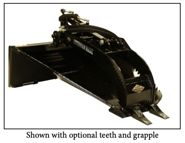 There are multiple uses for this attachment which include but are not limited to removing stumps, trees, rocks, cutting redwood, loading logs, and digging trenches. This attachment works perfectly for digging into the ground to get under stumps and roots. It comes complete with a 2 1/2” cylinder and hoses. Teeth and grapple are optional.