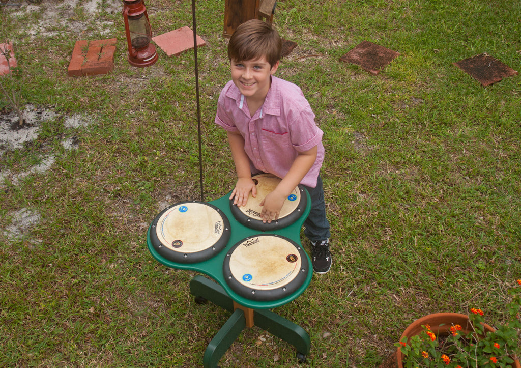 - Materials: Durable frame constructed of post-consumer recycled plastic (HDPE); Heavy gauge mylar REMO drum-heads.
