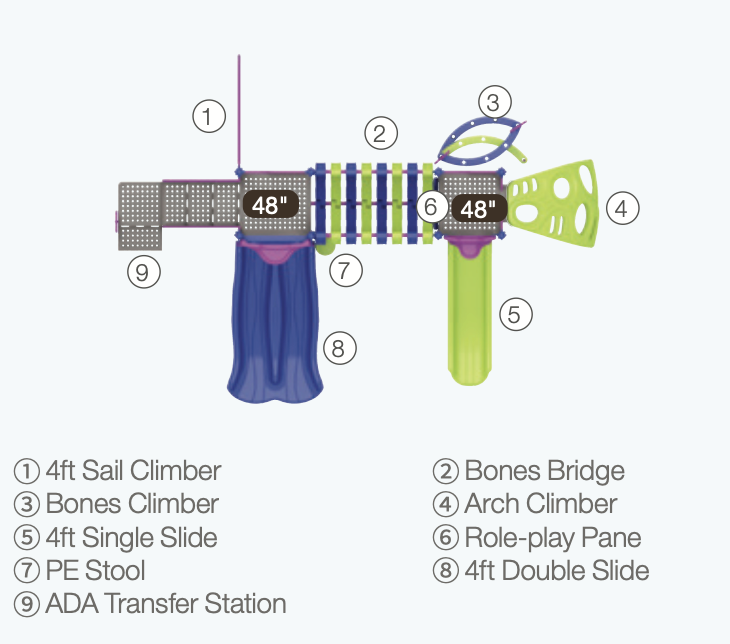 - Optimal Fall Height for Safety: With a fall height of 48 inches, the playground is engineered to provide a thrilling yet safe elevated experience, meeting important safety standards for peace of mind for parents and administrators at nurseries and preschools.