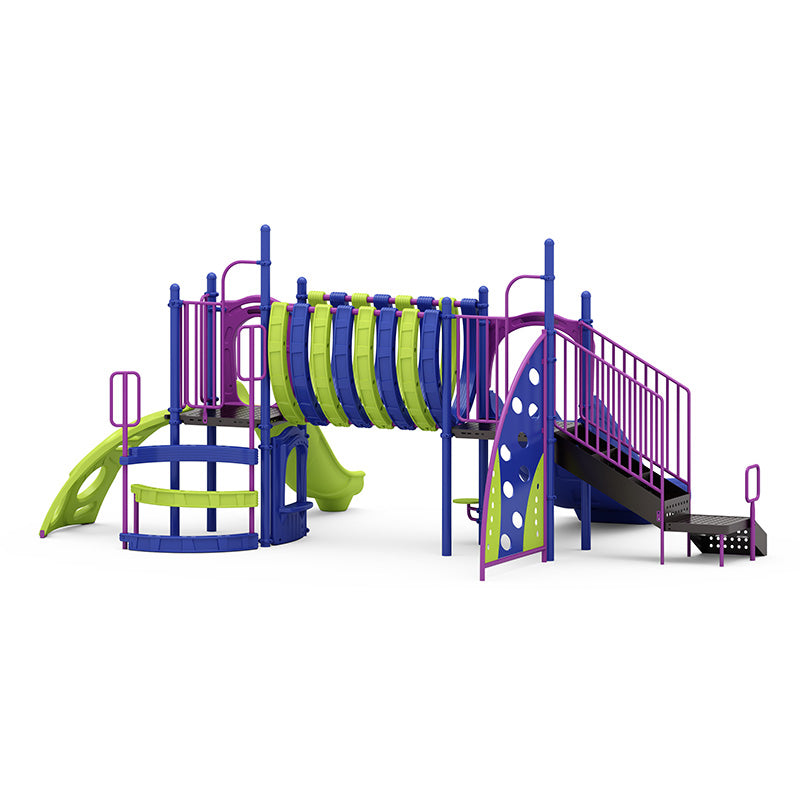 Are you a municipality, school district, non-profit organization, daycare, religious establishment, community center, apartment complex, or Homeowners Association seeking to create an iconic, visually striking, and endlessly engaging play space that truly caters to both toddlers and older children (ages 2-5 and 5-12)? Imagine a vibrant commercial playground teeming with a captivating signature arched crawl tunnel, exhilarating dual slides, challenging climbers, and varied deck levels that seamlessly support gross motor development, balance, and crucial social interaction. The Blue Water Cove playground is more than just equipment; it's a meticulously crafted outdoor adventure whose bold color scheme enhances visual appeal while its open layout encourages free movement and exploration across the entire structure, making it the perfect heart for fostering joy, active play, and stronger community ties for years to come.