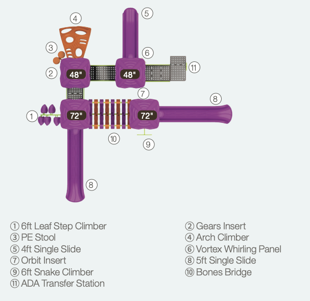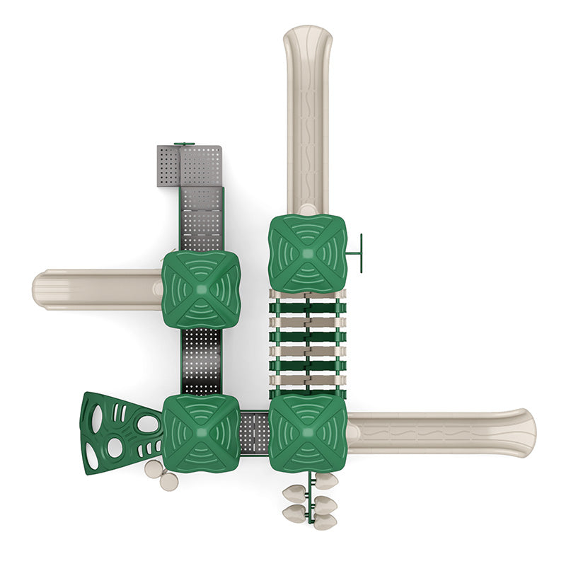 - Key Play Elements: Dual slides, interactive panels, vertical climbers, arched climbers, and a variety of activity elements.