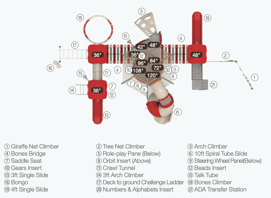 - Foster Inclusive Play for All Abilities: With thoughtfully integrated ADA-compliant components, Karoo Lookout ensures that children of all physical abilities can access and enjoy the excitement of the playground. This creates a truly welcoming and inclusive environment where every child feels valued and can participate in shared adventures.